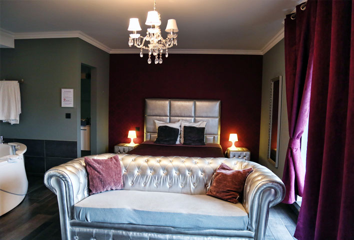 La suite est composée d'un grand lit, un coin salon avec tv led 46’’, dvd , tour i-pod et wifi. Pour vous relaxer vous aurez à disposition une baignoire à jets hydromassants deux personnes avec chromothérapie.