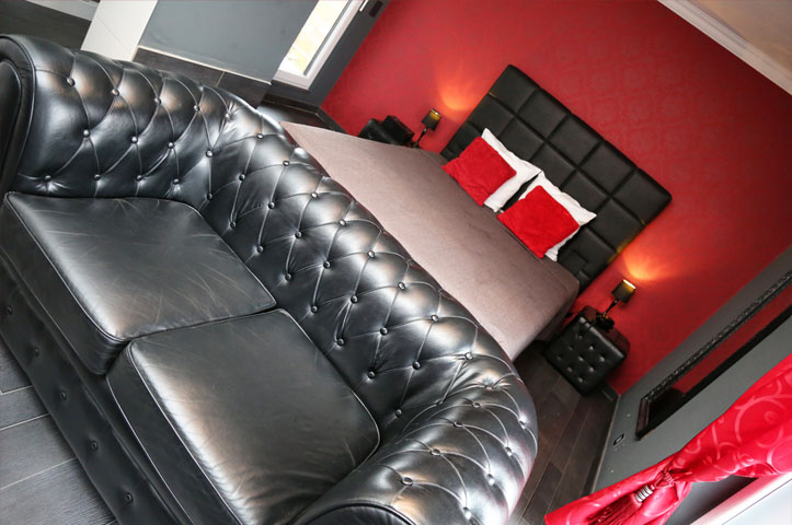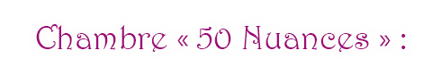 La chambre 50 Nuances aux couleurs rouges et noires vous transportera, pour ceux qui ont lu le livre, dans le monde de Christian Grey et d’ Anastasia Steele. Laisser aller votre imagination pour une petite scène érotique pleine de discipline et de servitude …ou tout simplement pour un moment tout en douceur. Alors ? Qui dans le rôle de Mr Grey ? …A vous de jouer !!