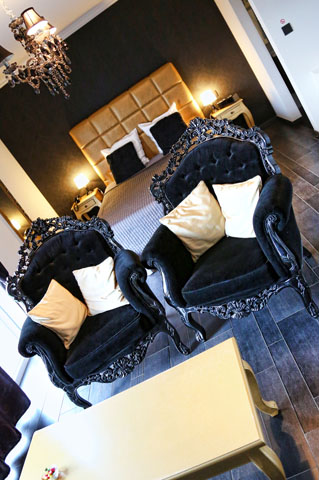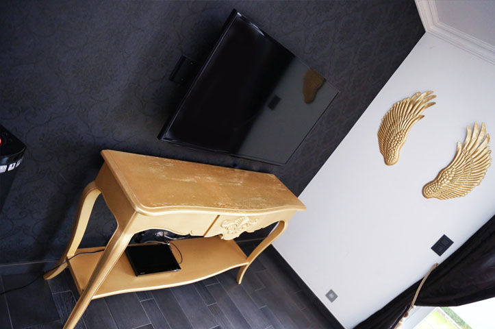 La suite Gold et son mobilier couleur or digne d’une chambre de casino à Las Vegas vous donnera un moment l’illusion d’être milliardaire à qui l’ on ne peut refuser aucune proposition indécente.